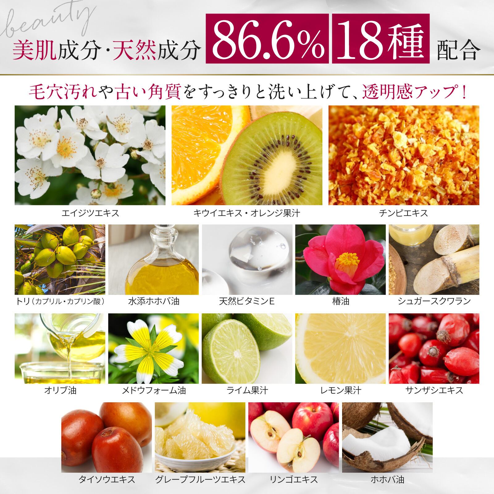 【毎日の洗顔やメイク落としが同時に美肌ケアに♪】【お肌をひきしめ整える】お肌をケアする美容成分を配合しております。洗顔やメイク落としをしながらお肌のケアを目指します。18種の天然美容成分配合:トリ(カプリル・カプリン酸)、水添ホホバ油、天然ビタミンE、椿油、シュガースクワラン、ホホバ油、オリブ油、メドウフォーム油、チンピエキス、ライム果汁、キウイエキス、オレンジ果汁、レモン果汁、エイジツエキス、サンザシエキス、タイソウエキス、グレープフルーツエキス、リンゴエキス【9つの成分は不使用】 シリコン、パラベン、合成着色料、紫外線吸収剤、紫外線散乱剤、動物性原料、フェノキシエタノール、アルコール 合成ポリマーを使用していません。【毎日のケアだから使いやすく、清潔に♪】洗顔の際に取り出しやすいワンタッチキャップの容器を採用しました。キャップの裏に収納できるスパチュラ付きなので、スパチュラをご利用いただくことでクリーム(バーム)が清潔に保たれます。