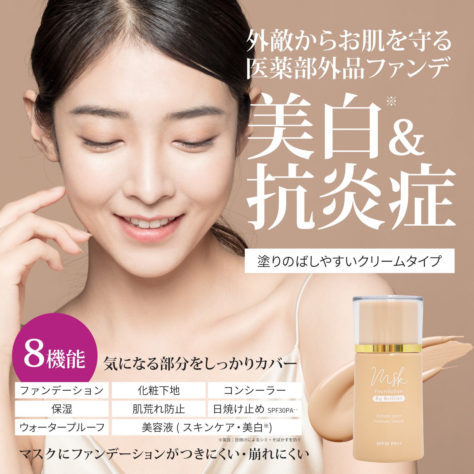 化粧下地、保湿、肌荒れ防止、ウォータープルーフ、日焼け止め、コンシーラー、美容液…1本で多機能なリキッドファンデーションです。美容成分95.5%でメイクしながらスキンケアも実現。 崩れない ファンデ UV ユーブイ クリームファンデ 化粧下地 BBクリーム リキッドファンデ 美肌 美白 年齢肌 セラム 化粧下地 美容液 スキンケア 美白 エージングケア ブルーライトオールインワン 敏感肌 オイリー肌 うるおい 潤い ひきしめ にきび 抗炎症 肌あれ あせも ひ | BE8 with Brilliet