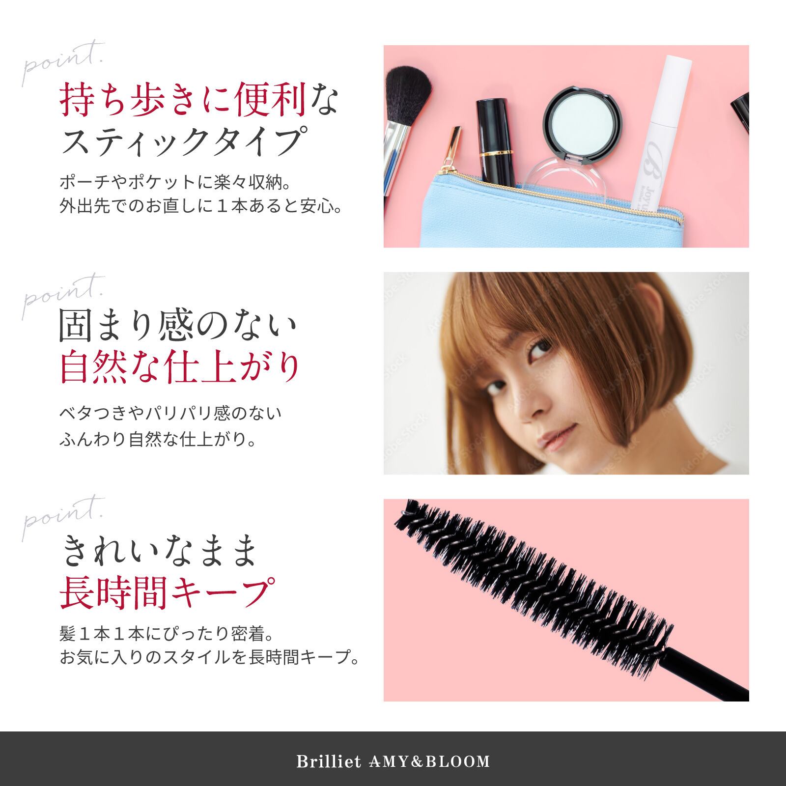 マスカラブラシでマスカラ形状、携帯に便利なスティックタイプ